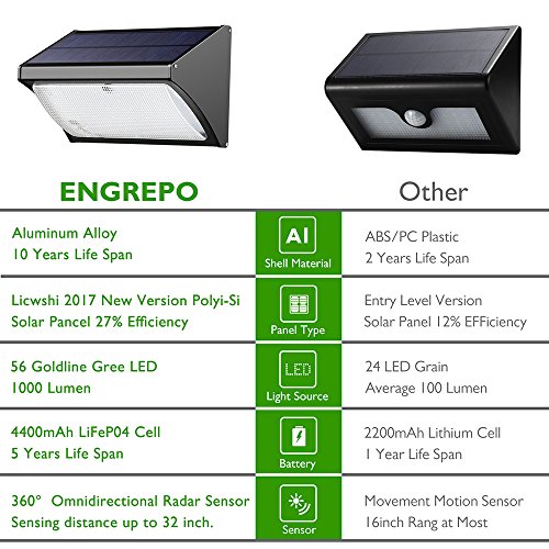Thank you for choosing the ENGREPO product. Our radar solar wall light is a durable nice looking product with low price and high performance. It is suitable for your garden, deck, driveway, pool and garage. More working models and remote control , it is more convenient and safe.