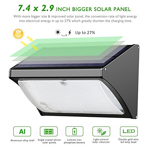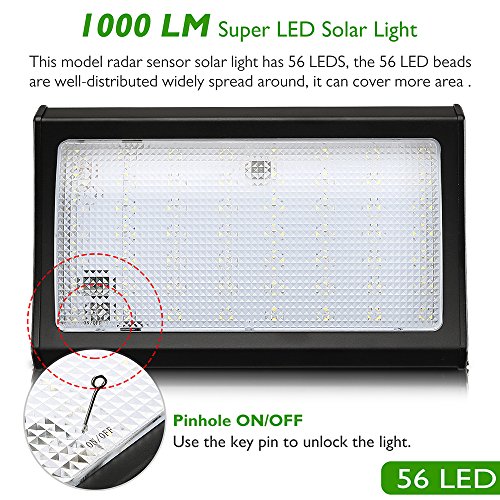 1000 LM supper LED solar light - this model radar sensor solar light has 56 LEDs, The 56 LED beads are well-distributed widely spread around, it can cover more area .
