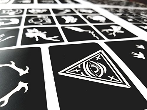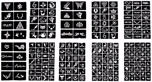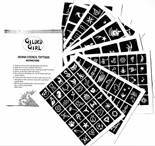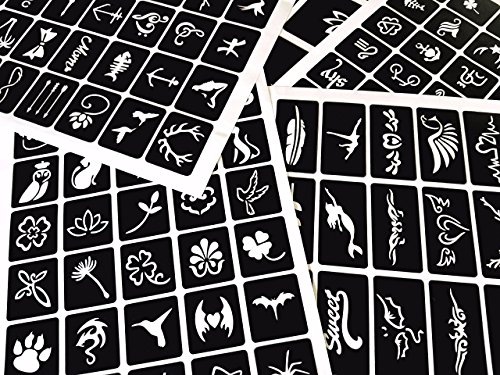- Complete, easy-to-read instructions included. Plastic stencils if handled with care may be reused 3-4 times. Mild adhesive (which keeps the stencil in place while applying tattoo paint) is safe and non-toxic, and allows stencil to be easily removed from skin. ⦁ Stencils can be used with henna color, glitter body pain, airbrush paint, etc. (not included).