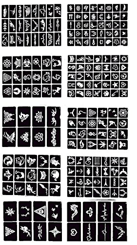 - SHIPS FROM THE USA With a total of 208 Professional individual stencils, the package includes 10 large sheets of henna stencils of varying sizes: 3 sheets of LARGER stencils (3.25x2.25 in.), 2 sheets of MEDIUM-SIZED stencils (2x1.5 in. and 2x1.75 in.), 3 sheets of SMALL stencils (1.25x1.5, 1.5x1.5 and 2x1 in.), and 2 sheets of MINI stencils (1.25x1.25 in. and 1x1.25 in.)