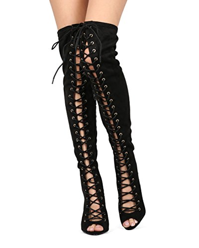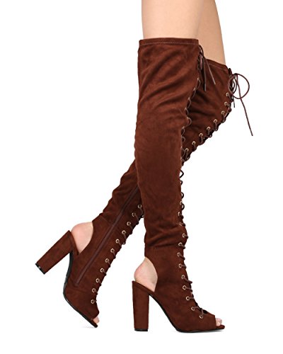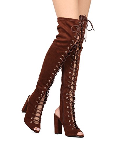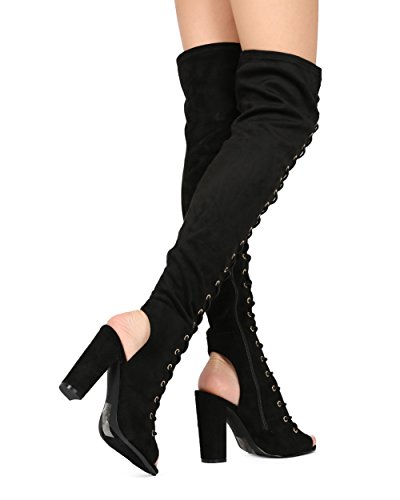 (Alrisco)/Women's/Boots/DIRECT FROM USA/Alrisco Women Faux Suede Over The Knee Peep Toe Lace Up Block Heel Boot - HG10 by Fahrenheit Co...