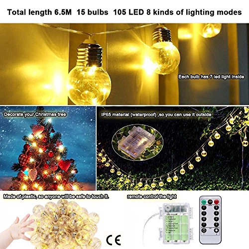 - 【Portable and Beautiful】Globe Fairy String Lights are widely used in road, yard, window, the place such as shops, hall, stage, walls, windows, doors, floors, ceilings, grasses, Christmas trees especially as a Christmas tree decorated with lights can be created a happy and romantic atmosphere.