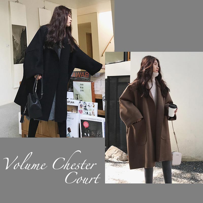 身幅も袖幅もワイドなショート丈のゆったりチェスターコートです♪