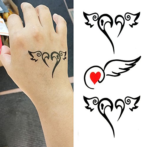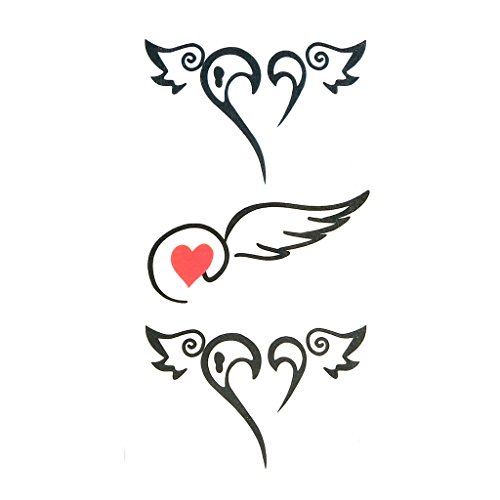 Oottati Small Cute Temporary Tattoo Heart Totem Wings (Set of 2)