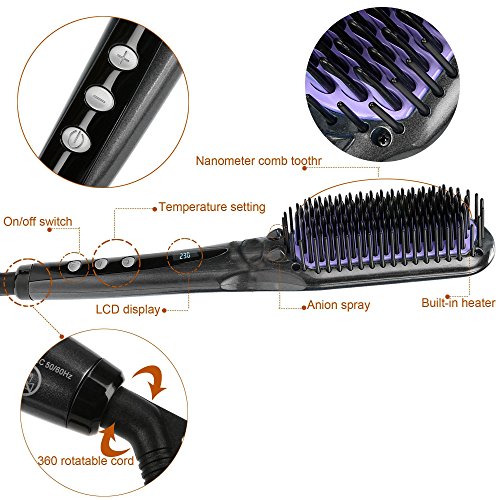 Usability Improvements: hair straightening brush allows you to straighten hair at home on your own. High end liquid crystal display lets you control and monitor temperatures easily, and the rotating wire means you can hold the device at any angle for the best straightening results
