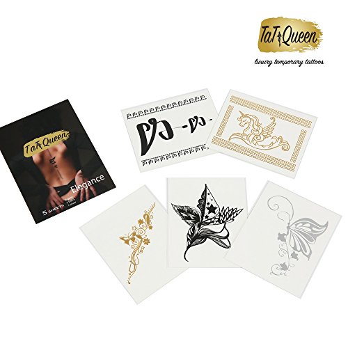 TaT Queen Elegance Flash Temporary Metallic & Henna Tattoos- Premium Body Paints Art Designer Jewelry Stickers Waterproof & Non Toxic, Great Gift, 5 Sheet...