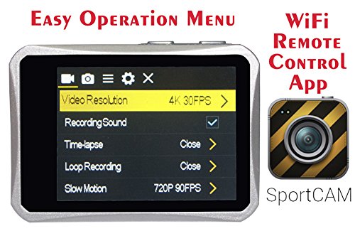 WiFi Remote Control by App: the App names as "SportCAM", is totally free of charge at both "Google Play" and "Apple App Store". You can remote control camera at distance up to 65ft (20 meters).