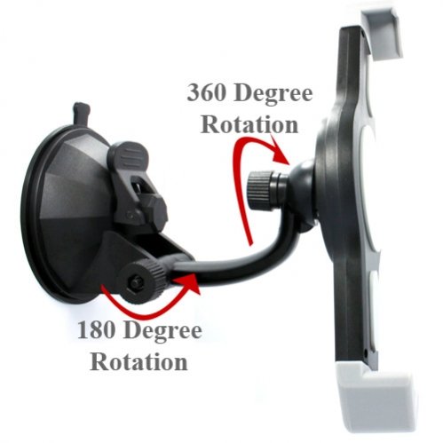 Use suction cup to safely secure your Tablet onto the windshield. No messy sticky adhesives. Holder extends for vertical or horizontal viewing. Extended holder locks in place to ensure a tight clamp on Tablet. Rotatable stand moves 360-degrees for comfortable positioning. Rotating joint ensures a perfectly angled display. Heavy duty suction cup can secure the holder on any smooth surface such as windshield, table, glass, etc.
