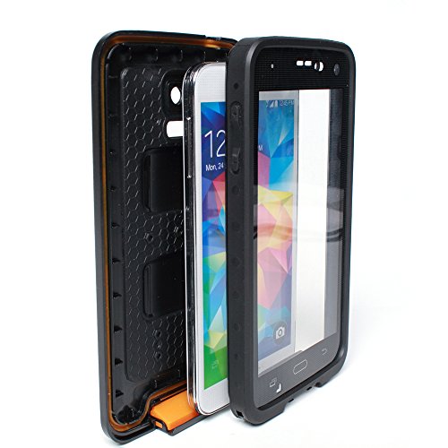 -. Feature : Take your Samsung Galaxy S5 with LevinTM case for surfing, swimming and snorkeling, it can waterproof up to 6.6 ft underwater or just relax yourself without worrying about your phone's safety / Anti-dust, shock proof, snow proof, dirt proof, which brings your loved phone full protection / Easy to create waterproof seal - just insert phone and press the two sides together (instructions included),Access to key functions like volume, charging, etc / Front and back lenses enables high-quality photos and videos through the case,built-in scratch protector delivers complete touchscreen protection / Package include: waterproof case, headphone adapter, user instruction