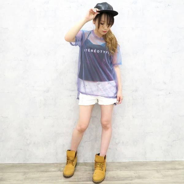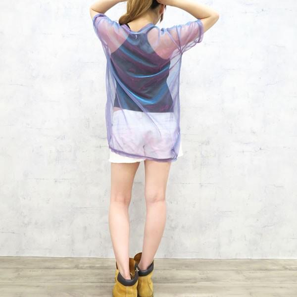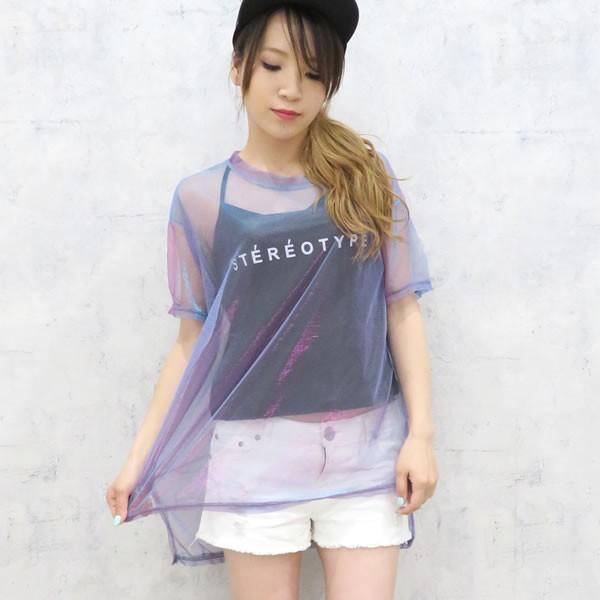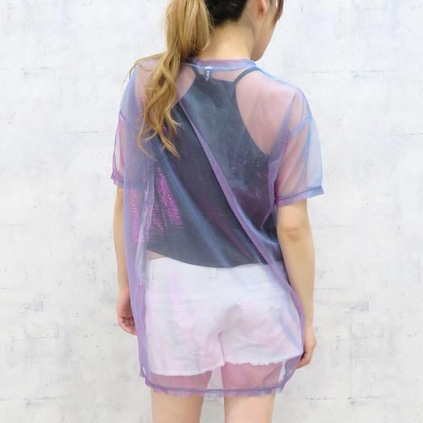 | 商品名:シャイニーカラー シースルー Tシャツ キャミソール アンサンブル パープル 無地 ネコポス可 【アンサンブル 女性 キャミソール Tシャツ 2点セット 透け感 シースルー オルチャン 原宿 韓国 インスタ レディース 肌見せ セクシー 半袖 ダンス衣装 コーディネート】 |