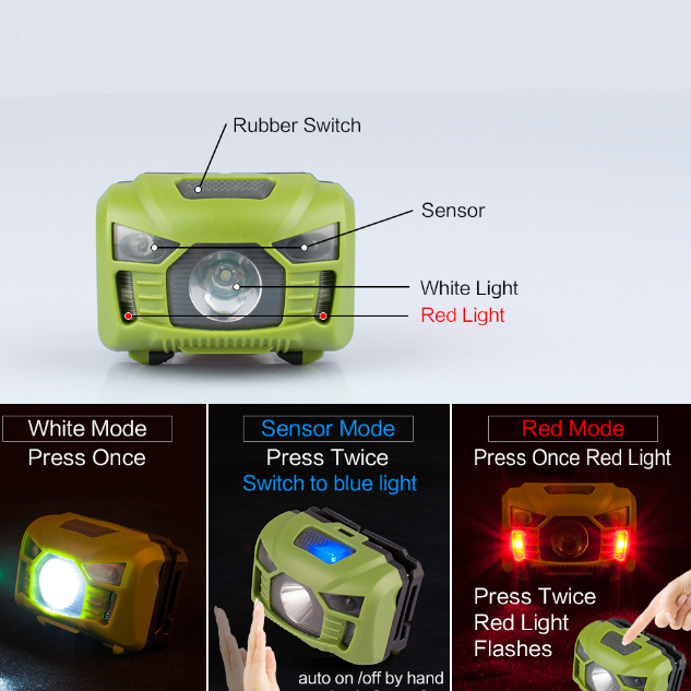 * Name: New USB charging light headlamps LED waterproof sensor headlights camping headlights USB rechargeable headlights