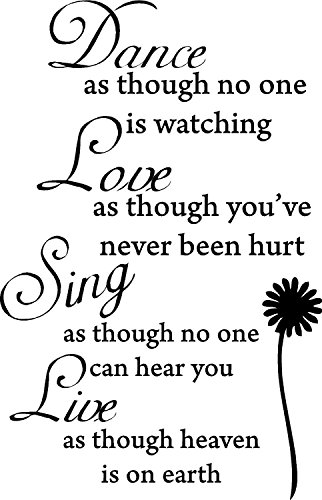 Color: Dance love The wall sticker is made of good quality of PVC material. It is very easy to apply.It can be directly attached to the walls of the living room, bedroom, kitchen, glass, ties and son on. They are waterproof and lasting, but repeated paste may affect the original condition. Apply Suggestion: Choose a smooth surface where you want to apply the sticker. Make sure that the surface is clean and dry. You can use a soft cloth or credit card to press the decal to smooth out any wrinkles. Image is not of actual scale. Please view the size above for actual size. These designs are copyrighted and trademarked by decalgeek. Any products and designs reproduced, distributed, performed, publicly displayed, or made into a derivative work without the permission of Decalgeek will be persued for damages as compensation for infringement.