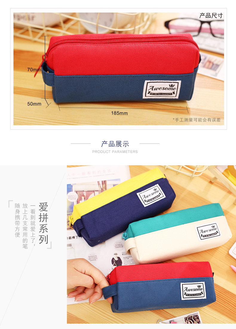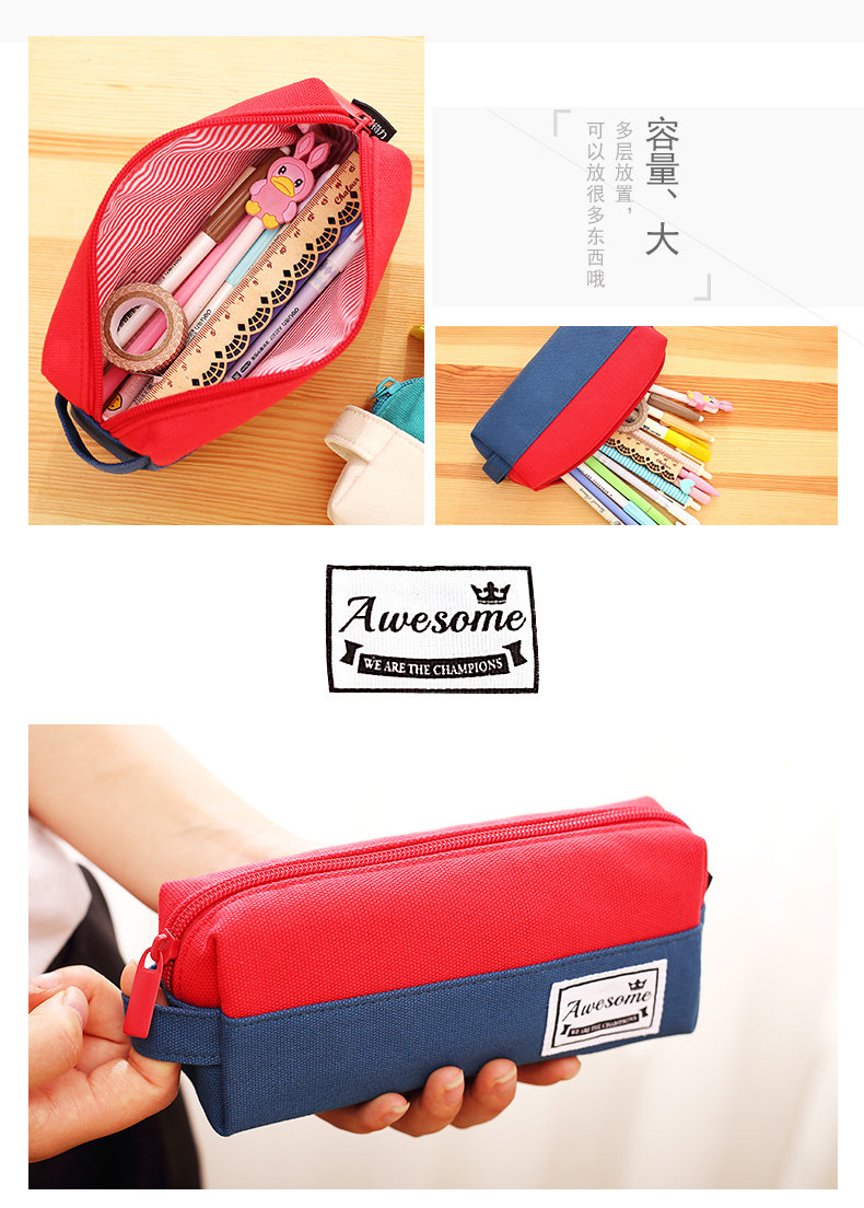 简约小清新帆布笔袋小学生铅笔盒男女大容量韩国风文具包笔袋