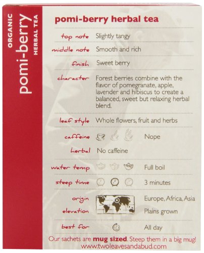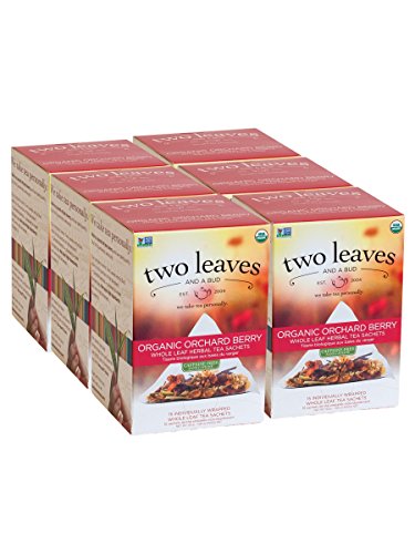 -. Binding : Grocery -. Brand : Two Leaves and a Bud -. EAN : 0894058000378 -. Feature : Whole Leaf Herbal Tea Sachets / Origin: Europe / Caffeine: No Buzz, Nada, Zip / Steep Time: 3 Minutes / Pack of six, twenty five-ounce (total of 150-ounce) / USDA organic / This A Great After-Meal Tea -. Label : Two Leaves and a Bud -. Manufacturer : Two Leaves and a Bud -. Model : T01715 -. MPN : 648037 -. NumberOfItems : 6 -. PackageQuantity : 6 -. PartNumber : 648037 -. ProductGroup : Grocery -. ProductTypeName : GROCERY -. PublicationDate : 2011-04-20 -. Publisher : Two Leaves and a Bud -. Studio : Two Leaves and a Bud -. Title : Two Leaves and a Bud Organic Orchard Berry Herbal Tea, 15 Count (Pack of 6) -. UPC : 894058000378