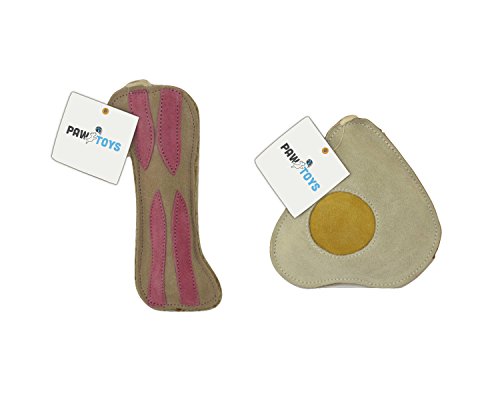-. Binding : Misc. -. Brand : Paw Toys -. EAN : 0627154134544 -. Feature : 100% NATURAL ECO-FRIENDLY SUSTAINABLE MATERIALS: Leather - Jute, Coconut Fiber - Jute Rope, Extra Jute Layers for Strength / NATURAL LEATHER JUTE dog chew toy and dog play toy recommended for medium chewers / BACON is approximately 8 inches in length / FRIED EGG has squeaker and is approximately 6 inches in diameter / THIS IS THE ONLY bacon and egg option that won't give your dog a cholesterol problem! -. Label : Paw Toys -. Manufacturer : Paw Toys -. Model : 72908697-263 -. PackageQuantity : 1 -. ProductGroup : Pet Products -. ProductTypeName : PET_SUPPLIES -. Publisher : Paw Toys -. Studio : Paw Toys -. Title : Eco-Friendly Leather Natural Dog Chew Toys Bacon and Fried Egg with Squeaker -. UPC : 627154134544