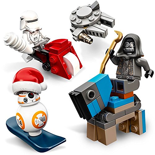 교통기관에는 고스트,팬텀,스톰 트루퍼 운반,레이의 스피더(speeder),밀레니엄 팔콘(Falcon),스노우 스피드,킬로 렌의 코맨드 셔틀,Y윙,TIE스트라이커,《호바탄쿠》,AT ST 7개의 미니 피규어와 즐거운 홀리데이를 테마로 한 피규어가 특징.24종류의 레고 스타워즈의 테마 기프트를 명백히 한 모든 기프트를 모음,LEGO스타워즈의 모험을 시작하자.