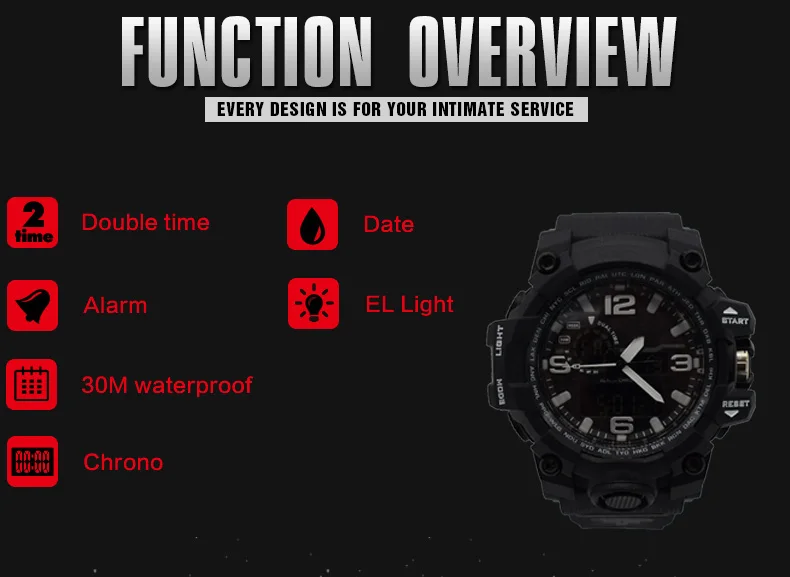Feature:Alarm,Back Light,Water Resistant,Shock Resistant,Stop Watch,Complete Calendar,Swim