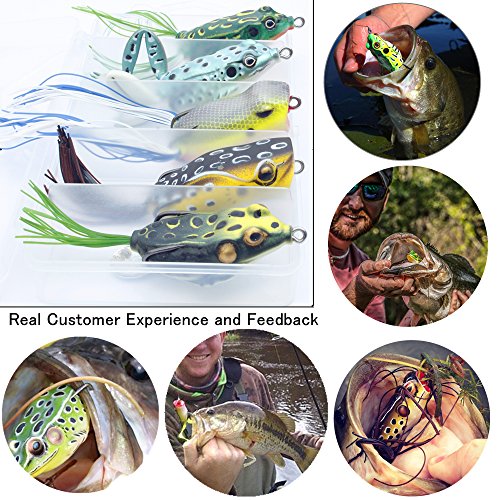 -. Title : Huishang Fishing Lure Set with Tackle Box Including Plastic Soft Lures Frog ,Topwater Frog Lure Set for Bass Snakehead Saltwater Freshwater Fishing Lures Accessories(Pack of 5)