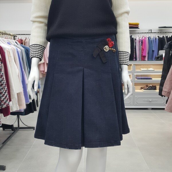 허리에 하트와열쇠장식이 포인트인 기모데님 주름스커트입니다~