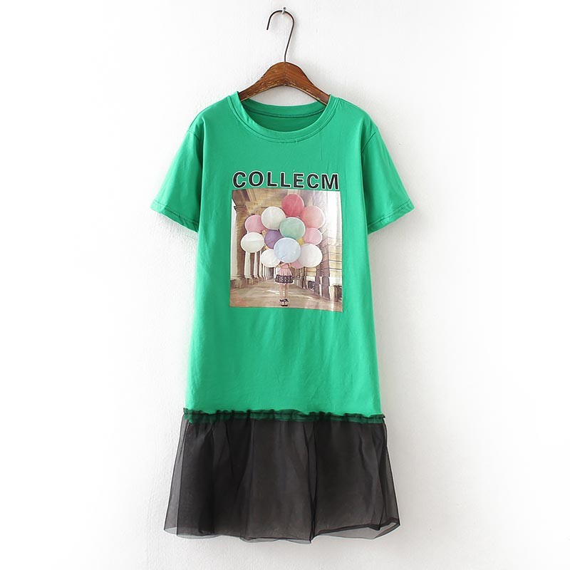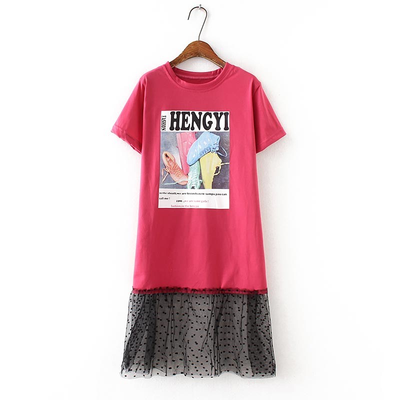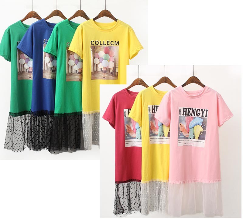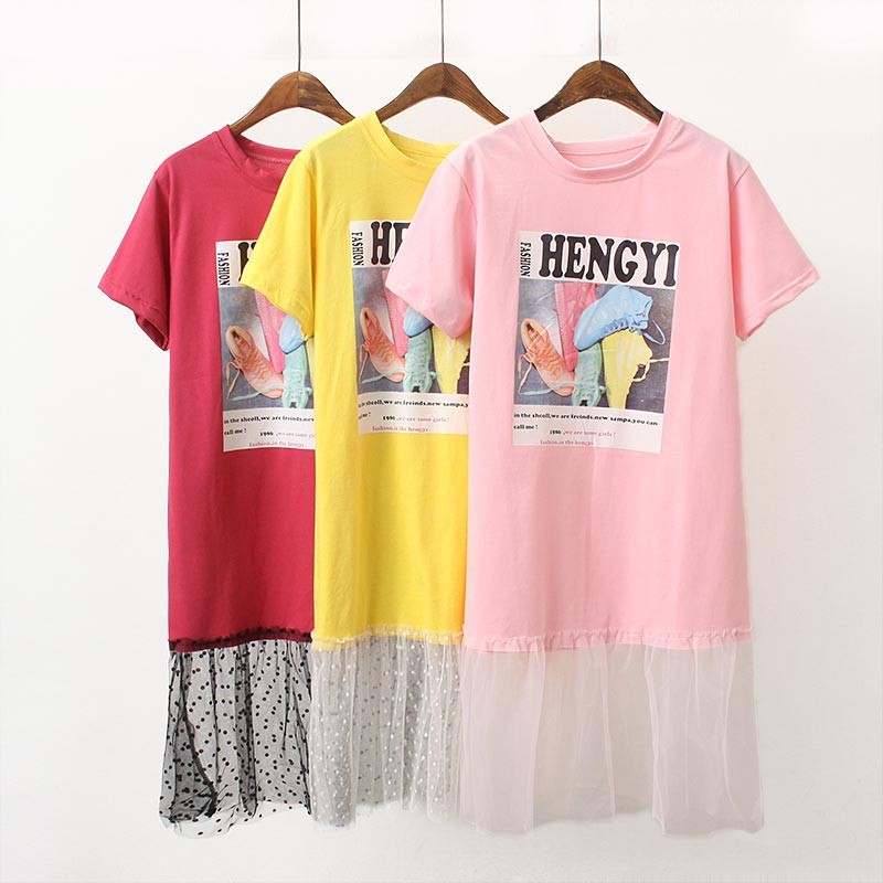 胸にグラフィックプリントデザインで裾メッシュのTワンピースです♪