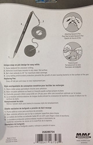 -. Feature : Black ink Secure-a-Pen Adhesive Counter Pen Includes 3 refills / 26" ball chain holds pen to base / Black rubberized grip and ridges for good feel and writing comfort / Unique design encases entire pen making refills quick and easy because entire pen snaps off and snap / Replacement pens will retrofit many existing security pens by cutting the chain and installing a new