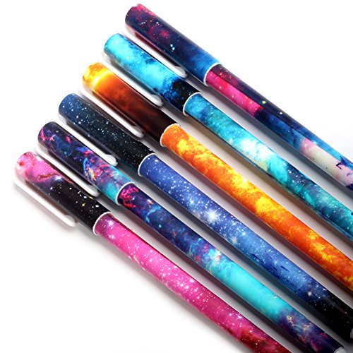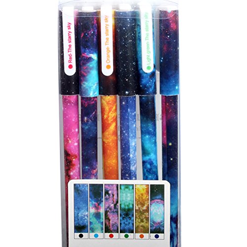 -. Title : JX HHB-03 Colored Gel Ink Pen,Fine Point Rollerball Pen,Pack of 6 Assorted Vibrant Colors,Cool Galaxy Starry Sky Pattern