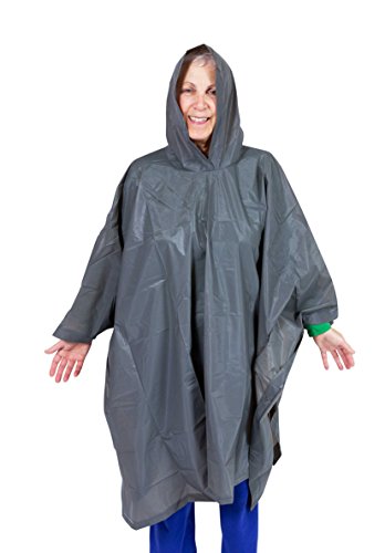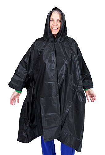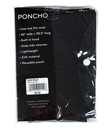 Product Description You visit an amusement park and you notice the sky is dark. Then the downpour hits, and you are soaked. This adult-size poncho fits in most purses and backpacks. It is easy to grab and unfold to pull over you. The built-in hood keeps your hair dry. Comes in a compact plastic pouch with snap closure. Buy extras to keep in your car and ?backpack. Great to pack for ball games and other activities. 0