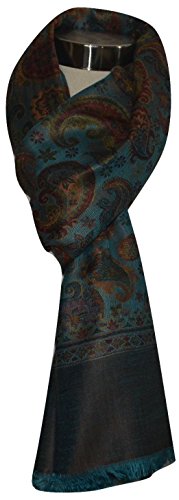 Binding : Apparel Product Description ITEM DESCRIPTION Handcrafted by artisans from Kashmir with Premium Quality Mulberry Silk and Pashmina Wool Modal fabric. This Scarf/Shawl is luxurious, super soft, warm, beautiful Multicolor Jamawar Weave Design in Paisley Floral . Very light weight and apt for any occasion. Never out of fashion. Dimensions: 78 Inches * 28 inches (Approximate) Maintenance: Dry Clean only. 0