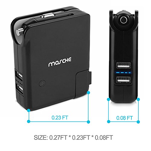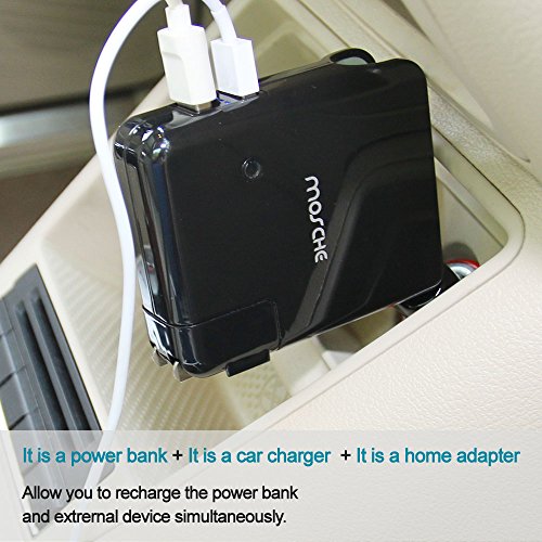 -. Binding : Electronics -. Brand : MOSCHE -. Color : Black -. EAN : 0724500816090 -. Feature : IT IS A CAR CHARGER -- With auto adapter, you can charge your cell phone by dual 2.1A USB port in your car. / IT IS A HOME WALL ADAPTER -- With AC 110-240V adapter, you can charge your cell phone and tablet by dual 2.1A USB port in your house. / IT IS A POWER BANK -- With 2600mAh capacity can charge your cell phone and tablet when you are out of your car and house. / IT IS A GOOD COMBINATION -- Built in 12V auto adapter and 110V-240V will AC wall plug both allow you to recharge the power bank and external devices simultaneously. / IT IS IN HANDY SIZE: Good for travelling with folding plug design and easy carry with in lightweight. -. Label : mosche -. Manufacturer : mosche -. Model : EL-KZDE-4JT1 -. MPN : EL-KZDE-4JT1 -. PackageQuantity : 1 -. PartNumber : EL-KZDE-4JT1 -. ProductGroup : Wireless -. ProductTypeName : COMPUTER_COMPONENT -. Publisher : mosche -. Studio : mosche -. Title : Portable Iphone Charger, Power Bank Mosche 3 in 1 Smart Dual USB Foldable Car Charger with Foldable Home Wall Charger and Built in 2600mAh External Battery Pack Cell Phone Charger -. UPC : 724500816090