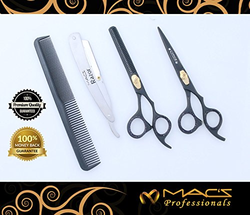 Macs Professional Black & Gold Plated Beauty full Double Tone Combination Razors Edge Barber Hair Cutting Scissor /Shear Set Made Of 440 Japanese...