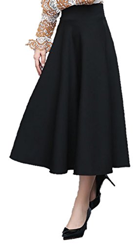 -. Feature : しなやかな生地でフレアたっぷりのひざ下丈、ミディ丈のフレアスカートです。 / 落ち着いた黒の上品なキレイめスカートは普段着というよりは、お出かけ、お呼ばれ、ホームパーティー等、ちょっとお洒落したいときにピッタリ☆トップスにブラウスや薄手のニットを合わせ、ネックレスやペンダントで華やかさをプラスすればセミフォーマルくらいまでご使用できます! / ウエストには太いゴムが入っていて、ゴムだけの着脱でラクラク♪ / 落ち着いたブラック、膝が隠れるミディ丈ということで、若い方なら10代から、20代、30代、40代、50代くらいの方まで幅広い年齢層の方にお勧めできるアイテムです。 / 素材: ポリエステル95% ポリウレタン5% サイズ詳細は商品説明欄をご参照ください。