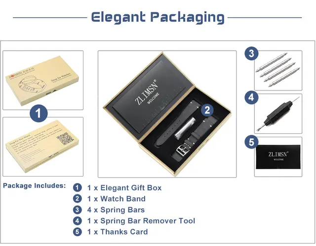 - Package Includes: 1 pcs x Watchband, 1 pcs x Spring Bar Remover, 4 pcs x Spring Bars