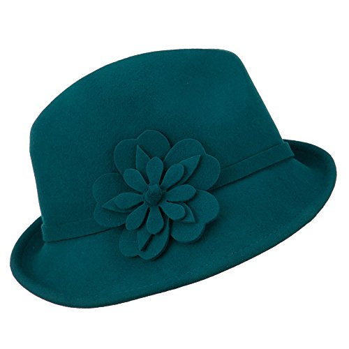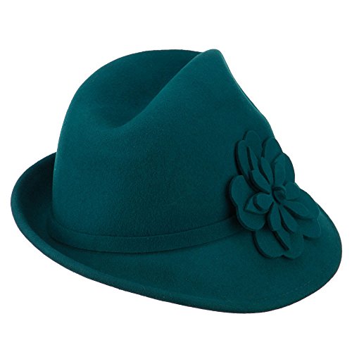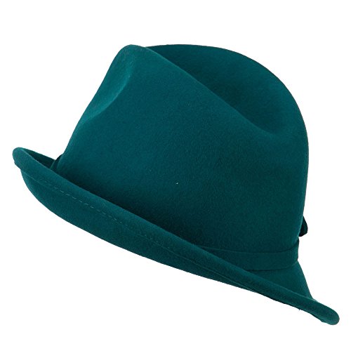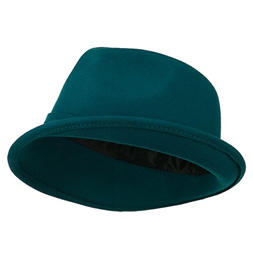 -. Binding : Apparel -. Brand : Jeanne Simmons -. Department : womens -. Feature : Made of 100% wool. / One size fits most ladies, fitting up to XL. / Adult/Female. / Fitted with an adjustable elastic tie in the crown. / Crown measures 4 inches deep. -. ProductGroup : Apparel -. ProductTypeName : HAT -. Title : Women's Wool Slanted Fedora - Teal