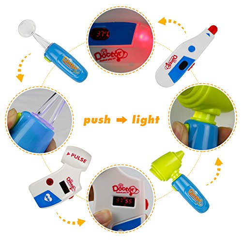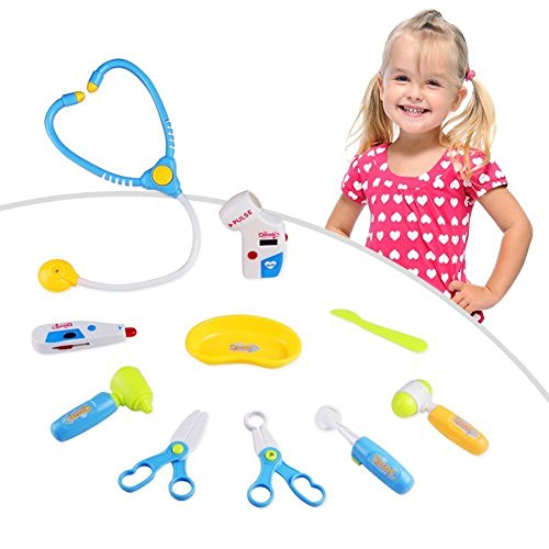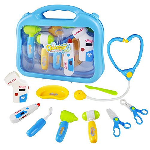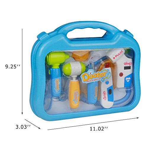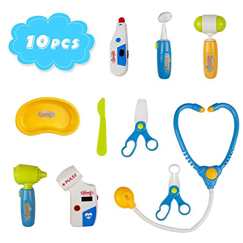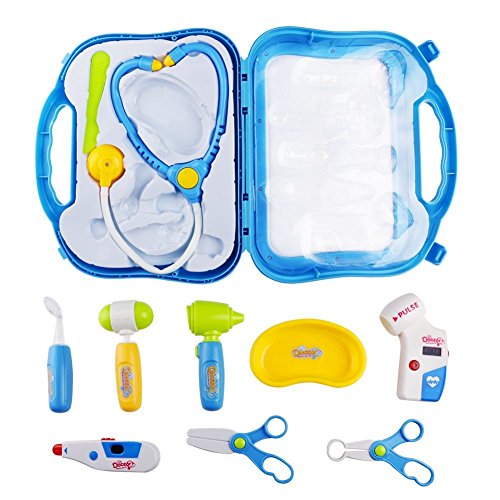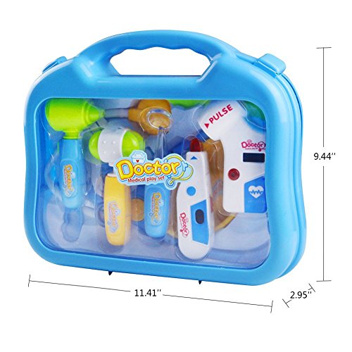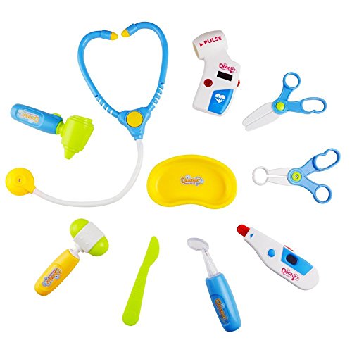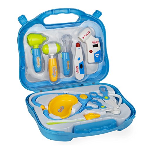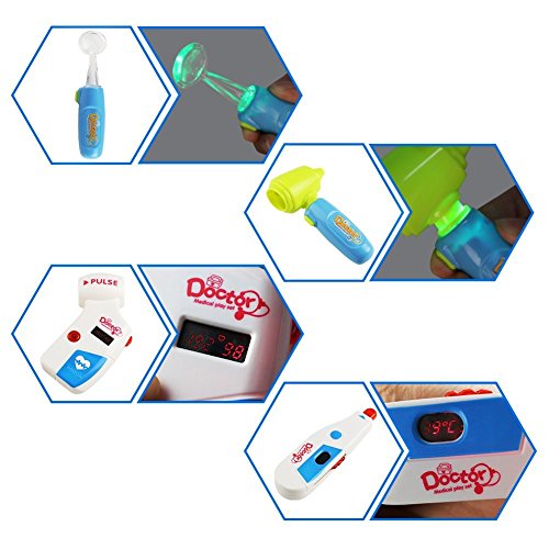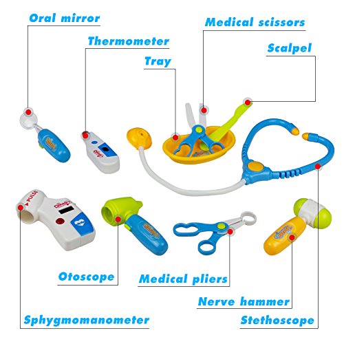 Contains: 1 x Carry case 1 x stethoscope 1 x oral mirror 1 x pulse oximeter 1 x thermometer 1 x reflex hammer 1 x otoscope 1 x doctors knife 1 x medical plate 1 x Pliers 1 x Scissor