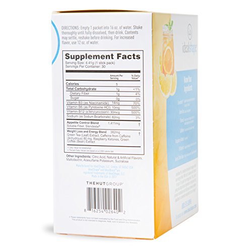 -. Binding : Health and Beauty -. Feature : HUNGER CONTROL - our weight loss drinks give you up to 3 hours of hunger control to crush cravings. / ENERGY - B vitamins and caffeine give you the energy boost you need to get through your day and stay motivated. / LOW CALORIE - diet drinks for weight loss need to be low in calories. IdealBoost only has 5! / DELICIOUS - kick your soda habit with the refreshing taste of IdealBoost weight loss drink mix. / GREEN TEA - green tea is proven to help boost your metabolism and increase fat burn. -. IsAdultProduct : 0 -. ProductGroup : Health and Beauty -. ProductTypeName : HEALTH_PERSONAL_CARE -. Title : IdealBoost, Weight Loss Drink Packets, w/ Hunger Blocking and Energy Blends, 30 Servings…