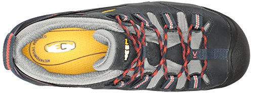 -. Feature : Left and right asymmetrical steel toes / Removable metatomical dual density EVA footbed / Oil and slip resistant non-marking rubber outsole / Lining with 2-zone comfort technology / Contoured heel lock