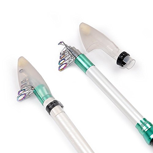 Fiblink Portable Carbon Fiberglass Pole Telescopic Spinning Travel Fishing RodThe telescopic fishing rod comes with rod , carry bag and fishing rod holder that has 3 compartments for tackle. Skillful manufacture and sophisticated technology provides reliable quality for the telescopic fishing rod. The rod is light, the closed length design is convenient carrying, white and green color collocation can make you feel relaxed. It is a good choice to carry it for a fishing trip.