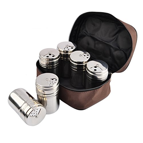 Yamix 6Pcs Stainless Steel Salt Sugar Pepper Shaker Seasoning Cans Spice Bottles for Kitchen and Outdoor Barbecue