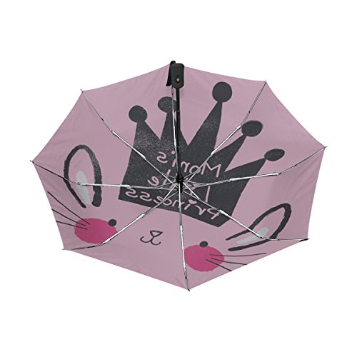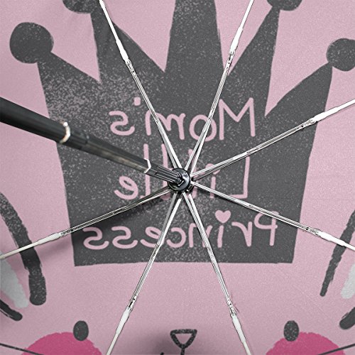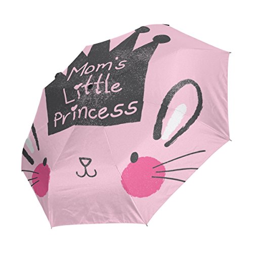 materials: made of 100% polyester pongee waterproof fabric. Weight: it is lightweight, 393g. Single-sided printing. Style: automatic open and close umbrella; foldable mini travel umbrella. Can be used on rainy and snowy day. Suitable for boys, girls, women and man. Feature: Light weight, small, portable. This Cute Bunny Face With Crown Text Mom'S Little Princess On Fashion Pink Background folding umbrella is also a perfect Christmas gift, new year gift, and back to school gift. 0