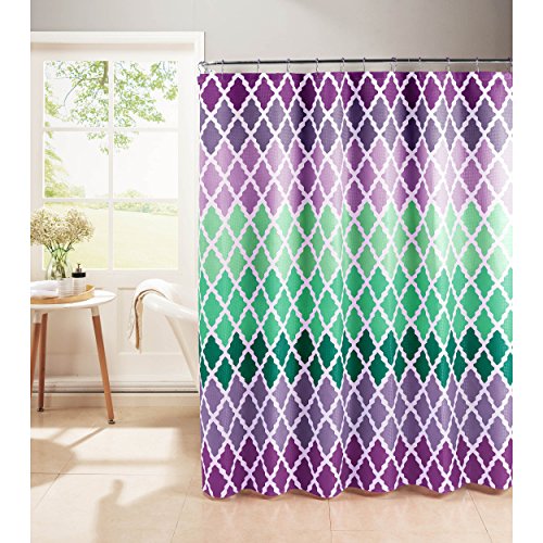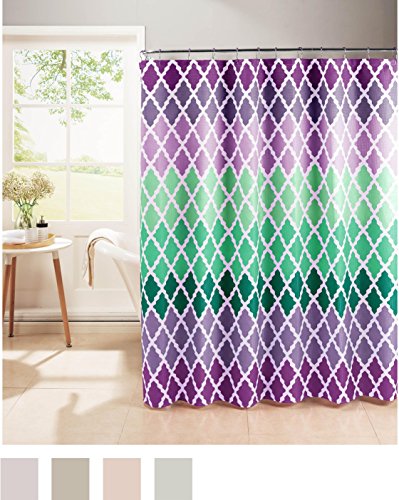 Creative Home Ideas Diamond Weave Textured 13-Piece Shower Curtain with Metal Roller Hooks, Gateway in Lattice Purple