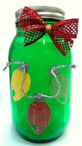 Holiday Decorated Jar with Solar Lid Light - Lights (Green)