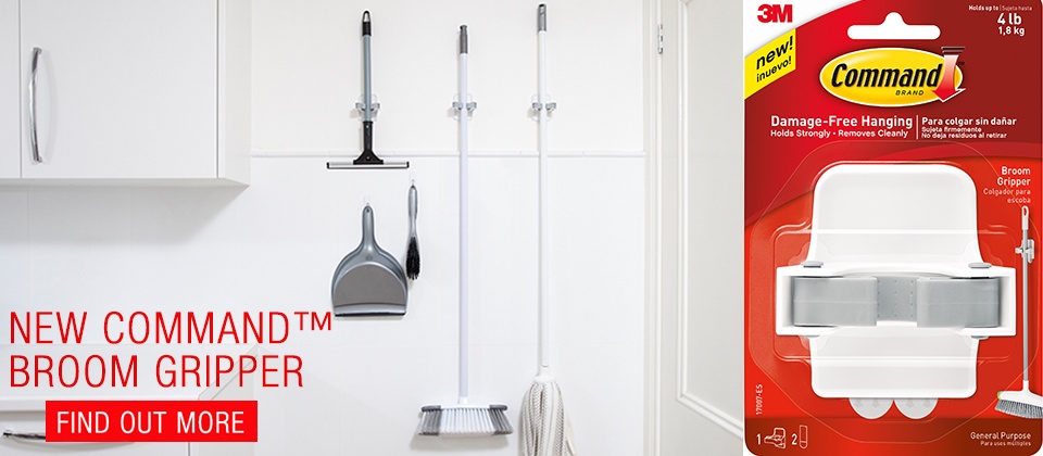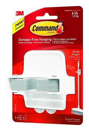 The Command™ Broom Gripper is great for neatly storing your brooms when not in use. Push broom handle into Command™ Broom Gripper for easy storage and pull it out when ready to use.