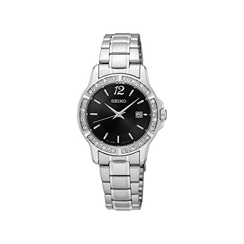 Being chic does not always mean your accessories have to be flashy and loud Maybe a subtle flair and unique qualities is exactly what youre looking for If that is the case then we are confident you will like this Seiko watch It is the perfect combination of smooth fashionable and exquisite It features a sleek silver stainless-steel band which is perfectly paired with a 30mmMM stainless steel case The best part about this watch is its dial which flaunts a creative black pattern This is where that subtle flair comes in ladies! The pattern is just enough to make a fashionable statement but without making it seem like you are trying Another aspect that contributes to the glamour of this Seiko watch is its silver detail which creates a beautifully polished contrast with the design that is on the dial This time-keeper is a winner hands down but it is not all good looks This watch can handle up to 30 meters 100 feet 3 atm of water so water damage is not in the books In addition to its water resistance its casing is made out of stainless steel and its face is guarded by a heavy-duty hardlex crystal So if youre a lady who loves to stay in vogue but does not care to put on a show this is your watch Not only will you be killing it in the fashion world but it will last you for years to comeFeature