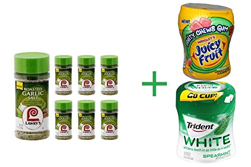 -. Title : Lawrys Garlic Salt Roasted - 7.12 Oz (Pack of 7) + Fruity Chews Gum Watermelon 1/60 Count + Trident Go Cup Peppermint and Spearmint 1/60