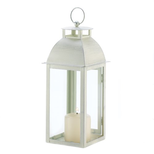 -. Feature : Exquisitely crafted candle lantern with clean and simple lines / Brushed weathered ivory finish with glass panels / Lit candle turns it into a marvelous decorative centerpiece / Perfect gift for housewarmings and other occasions / Great decorative item for weddings and parties