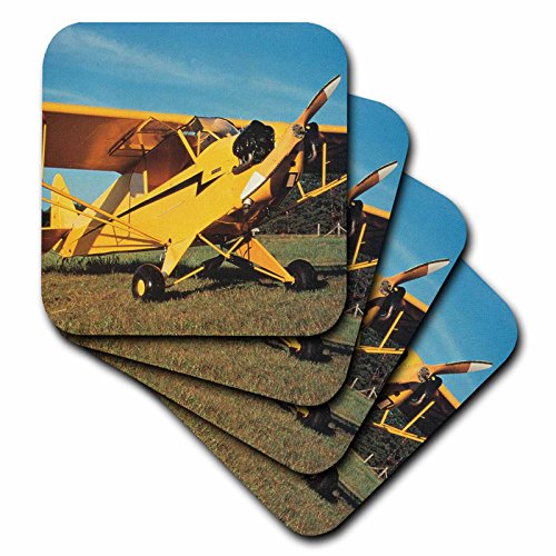 3dRose cst_33350_2 Yellow Cub Plane-Soft Coasters, Set of 8