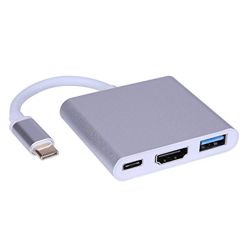 -. Title : HDE USB C to HDMI 3-in-1 Multiport Adapter Aluminum Hub with USB 3.1 Type C 4K HDMI and USB 3.0 Port Portable Recharging and Video Converter for MacBook Chromebook Pixel and More