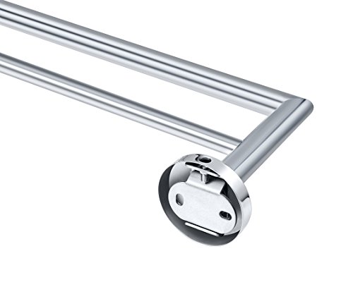 APPEARANCE - Our Modern Double Towel Bar with Round Base is an excellent addition to any home or office bathroom. The mounting screws are hidden and out of sight and with its modern shiny/polished stainless steel finish, makes it both modern and clean looking.