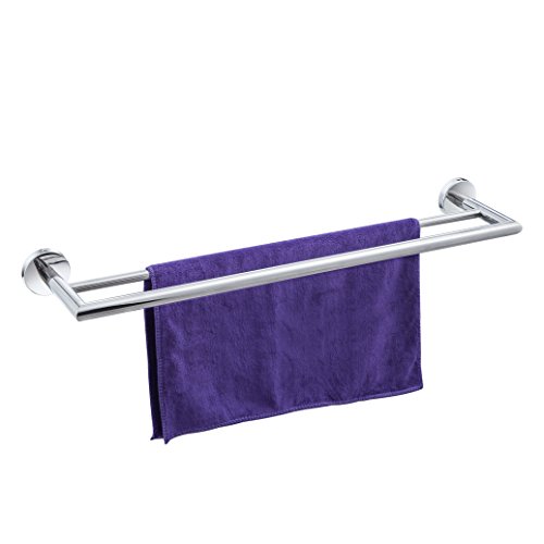 APPLICATIONS - Our Double Towel Bar is designed for both home and office bathroom use. It contains two bars for you to hang towels or clothing. It is easy to install on any wall or cabinet that you can drill a hole into.