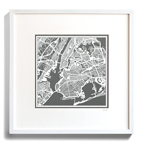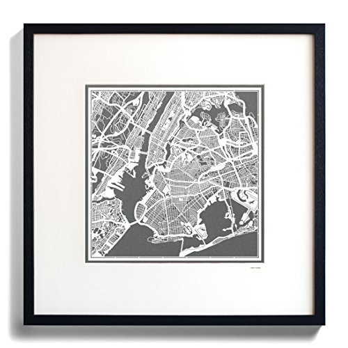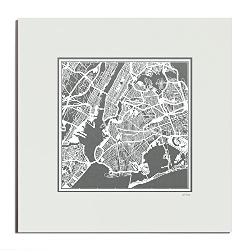 O3 Design Studio New York Paper Cut Map Matted Grey 20x20 In. Paper Art